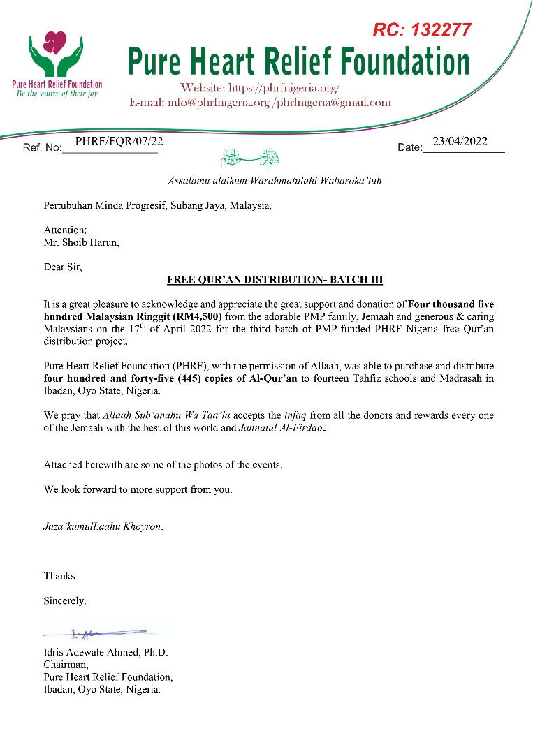 As usual contributions can be channelled to PMP Maybank account 562302618716 Ref: Waqf AlQur'an